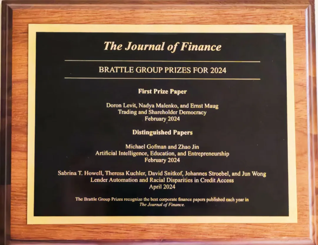 Brattle Group Prizes 年度杰出论文奖是全球金融学界极具权威性的奖项,由全球顶尖金融学术组织美国金融学会(The American Finance Association, AFA)于1999年发起,旨在表彰年度在公司金融领域发表的最佳论文。