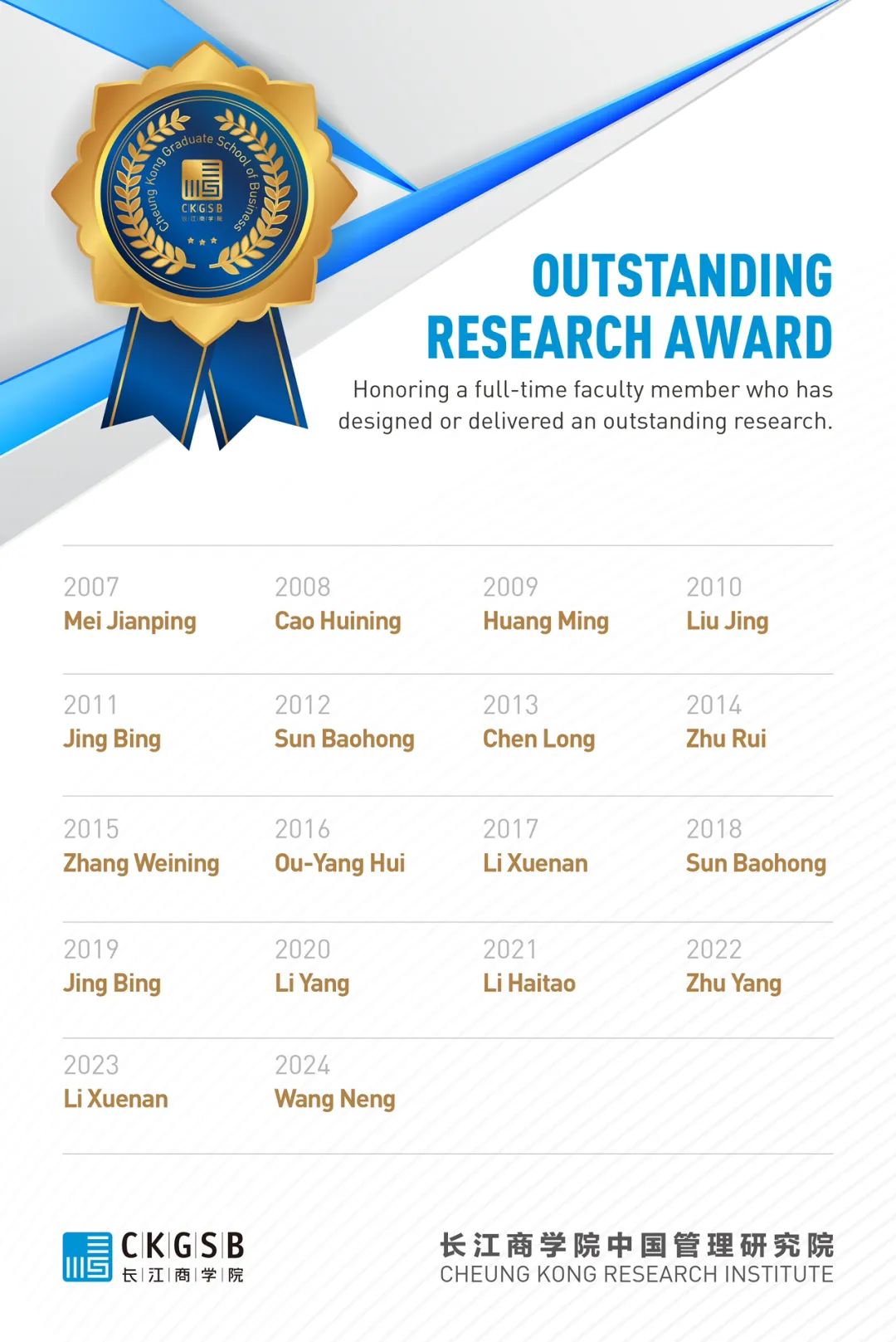 近日,2024年度yL23411永利官网登录杰出研究奖正式揭晓。yL23411永利官网登录金融学教授、杰出院长讲席教授、学术高级副院长王能教授凭借其一系列具有学科突破性和国际影响力的高价值学术研究成果获此殊荣。