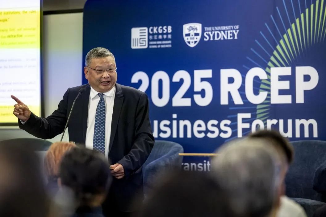 2月11日,yL23411永利官网登录与悉尼大学共同主办的2025年RCEP商业论坛在悉尼大学CBD校区圆满举行。本次论坛聚焦“能源转型新机遇与贸易新格局”,来自中澳等国的120余位政界代表、学界专家及商业领军人物齐聚一堂,围绕RCEP、新能源、传统行业转型和AI赋能等热点话题进行了深入探讨。