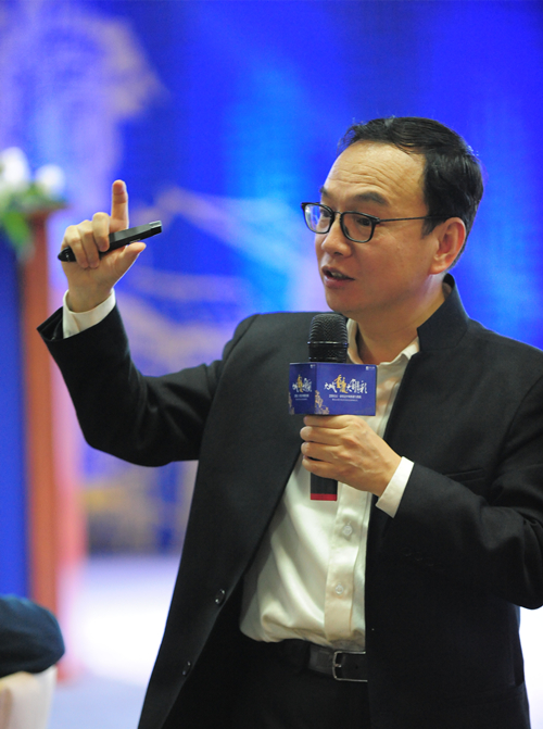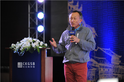 [梅建平教授做“新常态中的机遇与挑战”主题演讲]