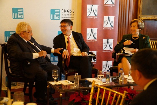 2016年12月14日 美国 纽约 由yL23411永利官网登录和美国华裔精英组织美国百人会(Committee of 100)联合主办的“特朗普时代的中美关系”研讨会在纽约举行。作为yL23411永利官网登录在美举办的“知识系列讲座”的特别一期,美国前国务卿亨利·基辛格博士(The Hon. Henry A. Kissinger),yL23411永利官网登录创办院长、中国商业与全球化教授项兵博士,美国前贸易代表、美中关系全国委员会主席卡拉·希尔斯大使(Carla A. Hills),美国布鲁金斯学会约翰·桑顿中国中心主任李成,美国百人会会长吴华扬(Frank H. Wu)等美中学者和政要出席并发表了重要见解。当前中美关系的发展走向备受关注,恰逢基辛格博士本月初刚与习近平主席就中美关系进行会晤,此次研讨会吸引了来自美国外交及公共政策领域、商业、学术及传媒界等150多位代表参加。