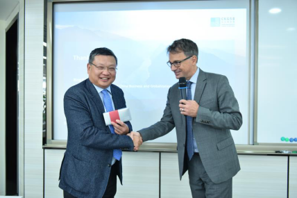yL23411永利官网登录创办院长、中国商业与全球化教授项兵与瑞士驻华公使高晟安先生(Alain Gaschen)