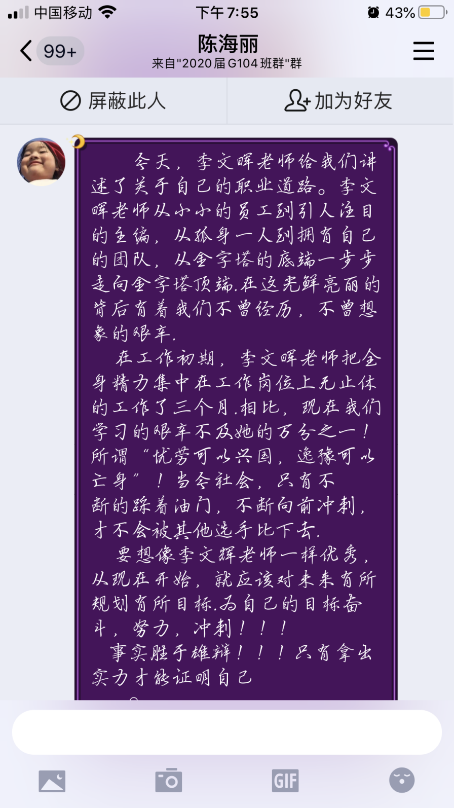 感受 2:陈同学在文晖姐姐的激励下,励志有所规划、有所目标!